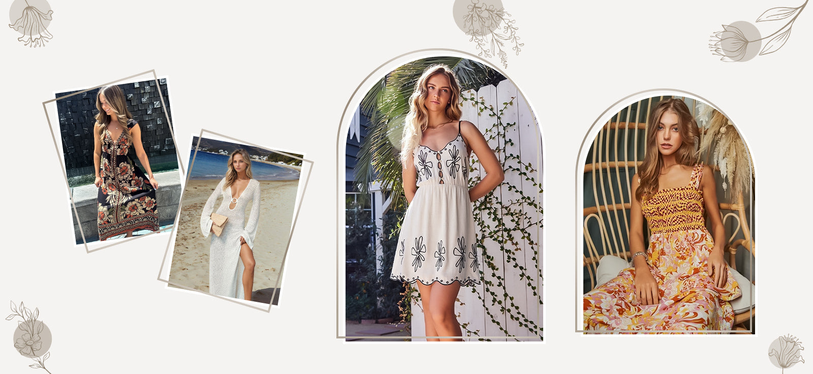 Add a touch of bohemian charm to your wardrobe with our April flowers dress. This short dress features a tie back for a unique and adorable look perfect for any occasion, such as Easter, brunch, or vacation.