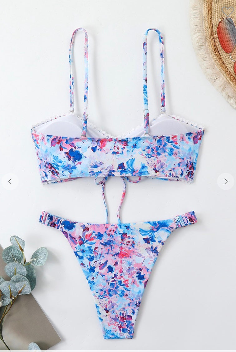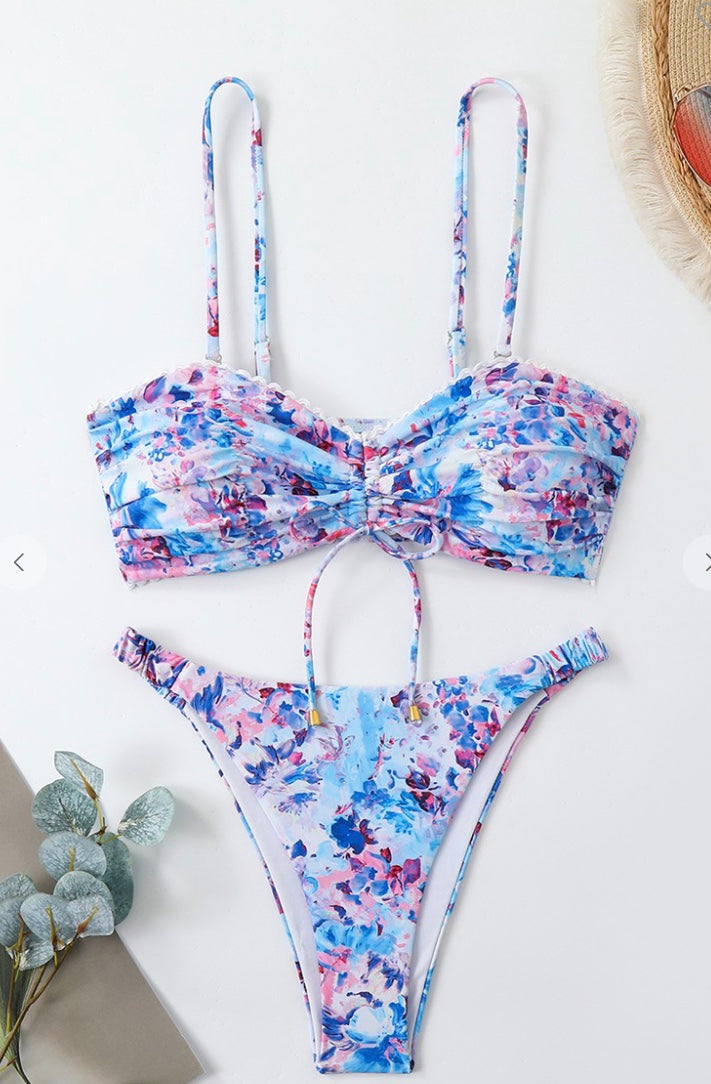 Upgrade your swimwear collection with the Santorini Swimsuit! This 2-piece bikini features a beautiful floral print in a vibrant lavender color. Stay stylish and comfortable at the beach or pool. Perfect for your next getaway! Paired with our coastal breeze shorts and stay sunny hat.