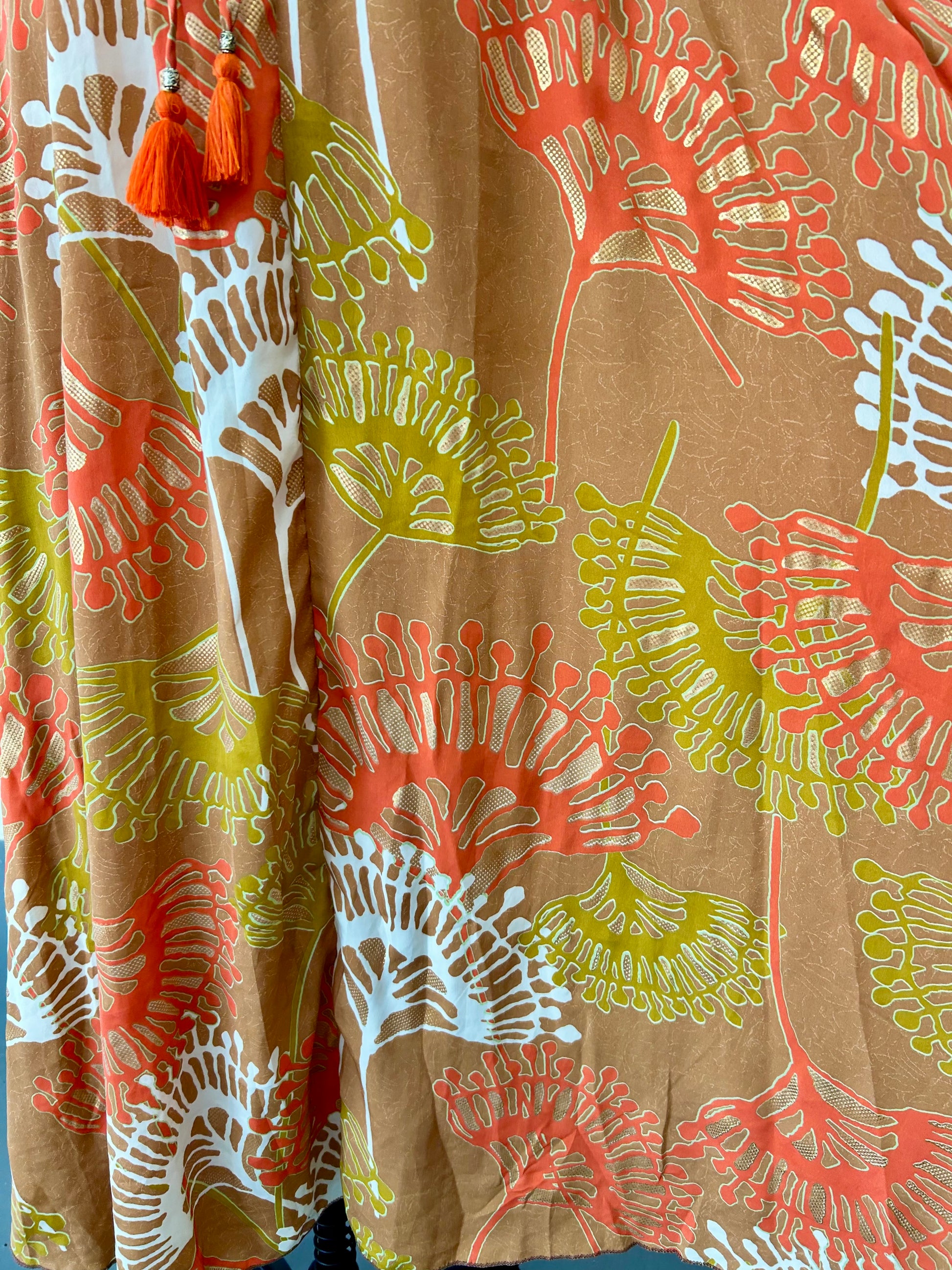 The Annika dress features a strapless design with a stylish scrunch tie detail and a flattering cutout, enhancing its feminine appeal. Crafted with a stretch waist and back, it ensures a comfortable, flexible fit for various body shapes. Adorned with a vibrant floral print, this one-size dress combines elegance and ease, perfect for warm-weather occasions. One size best on size 2-16